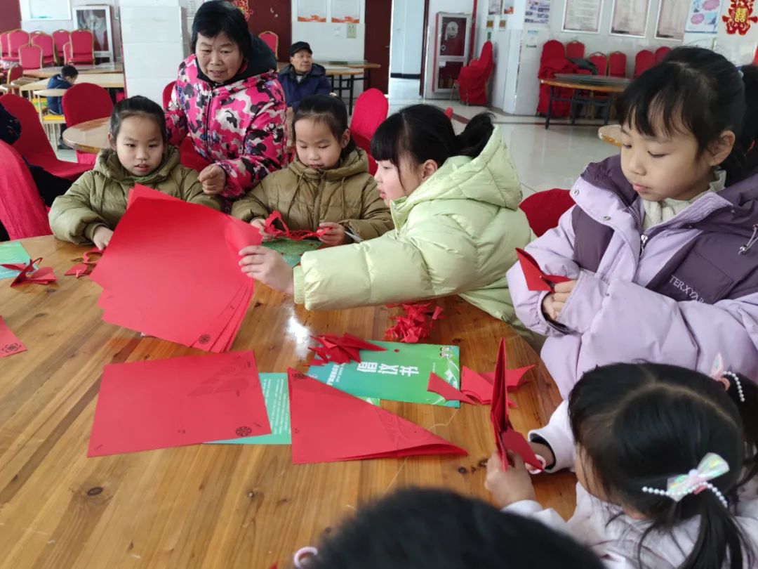 演出前,参加活动的村民齐聚在文化礼堂内,学校为大家准备了剪窗花活动,志愿者通过讲解、示范、指导等方法向大家展示剪纸的魅力。参加活动的村民精心设计、细致耐心地操作,一张张图样。一幅幅作品精巧别致,惹人喜爱。