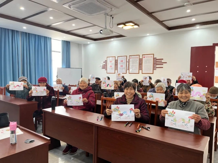 为了丰富老年人的晚年生活,促进辖区老年人的身体与心理健康,提高其手、眼、脑协调能力和对色彩感知能力。3月11日,斜桥镇金石村老年学堂在文化礼堂开展了“绘出靓丽·点缀夕阳”老年人绘画活动。活动开始,工作人员分发了彩色颜料以及事先准备好的素材,鼓励老年人要敢于想象和创作,根据自己的所思所想来给这幅画润色。老人们随后开始了各自的创作,他们通过自己构图、选色涂色,没过多久就一幅画逐渐有了各自的缤纷色彩。在创作过程中老人们彼此交流、互相帮忙、互相欣赏,现场氛围温馨和谐。最后大家相互分享了彼此的作品。