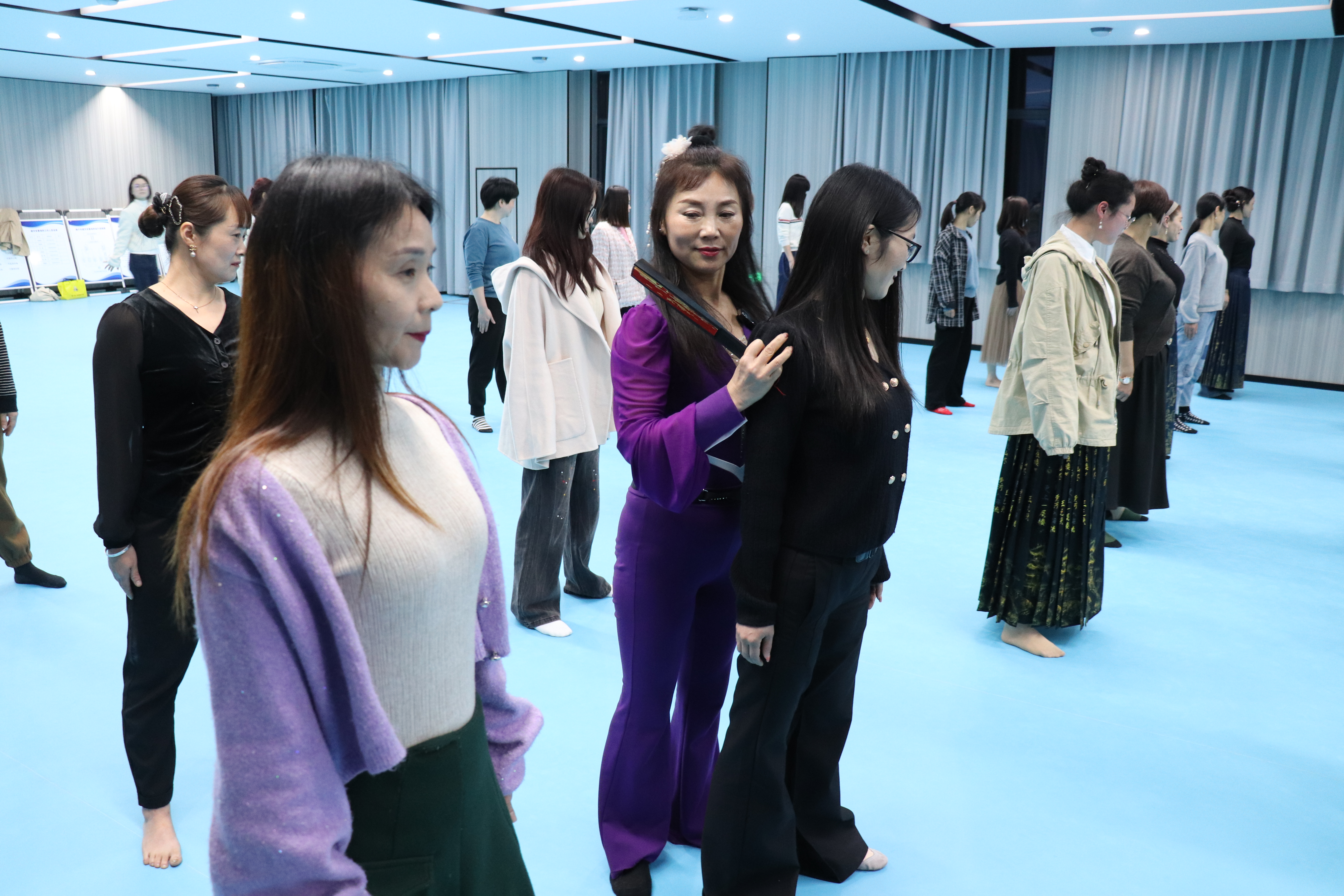 海宁市动漫协会会长李忠华出席开班仪式并讲话,他介绍了协会的基本情况与马面裙目前的发展前景,鼓励学员们通过培训不断提升气质,增强自信。随后,成校顾永利校长强调了培训纪律,希望学员们学有所成,争做传统文化的传承者、优美舞蹈的领舞者和终身教育的引领者。