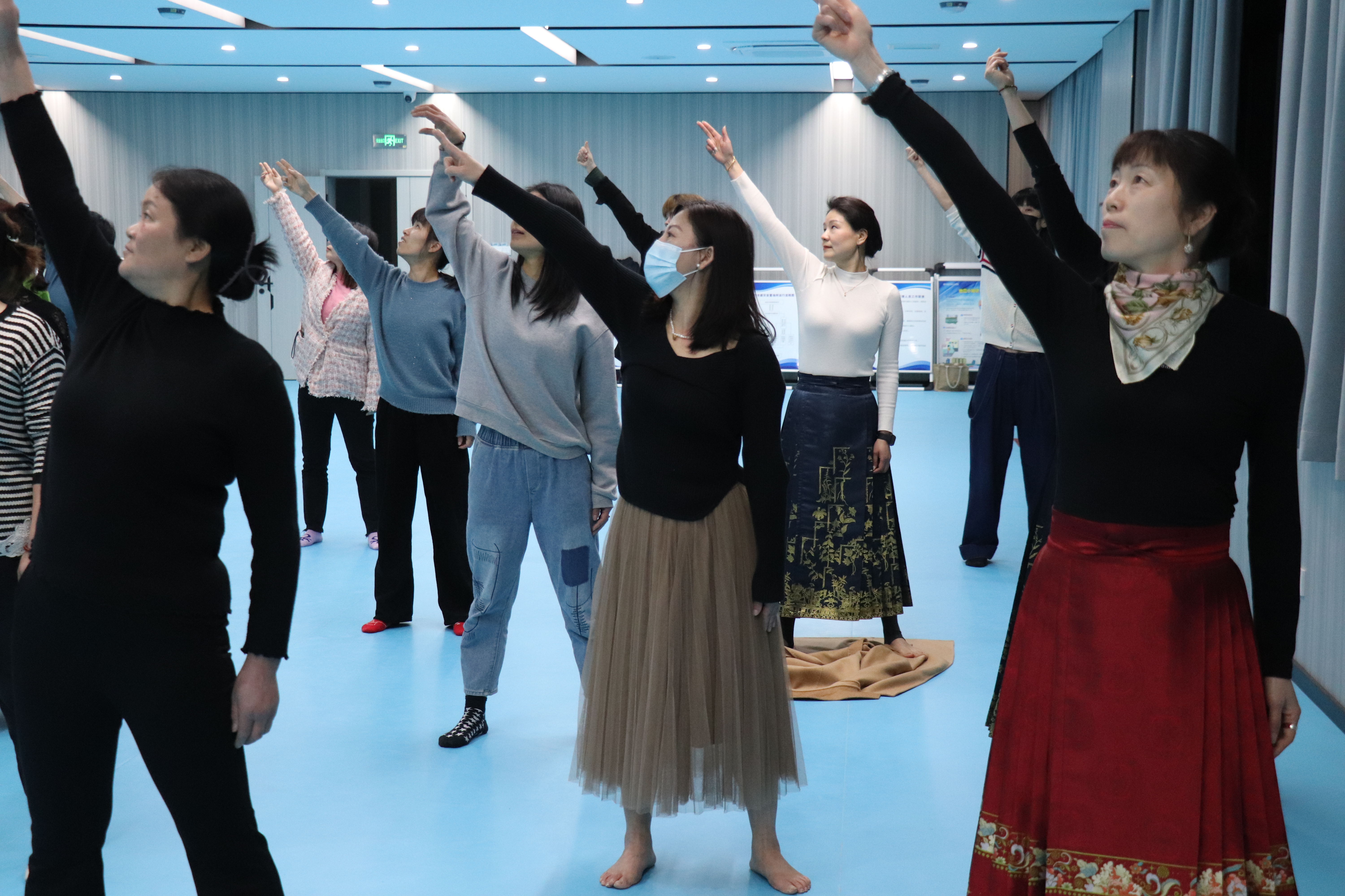 培训班为期两个月,邀请了海宁市动漫协会汉服文化专业委员会主任,原浙江小百花越剧团演员、浙江歌舞台演员、国家二级演员闵盈盈老师授课。第一堂课,闵老师从马面裙形体表演的基本站姿和眼神开始示范,要求学员们在练习中做到腰背笔直、精神抖擞、昂首阔步。在闵老师的带领下,学员们跟随着悠扬的音乐,一遍又一遍地认真练习,将中国传统服饰与现代时尚完美结合,彰显出新时代女性的优雅气质和自信风采。
