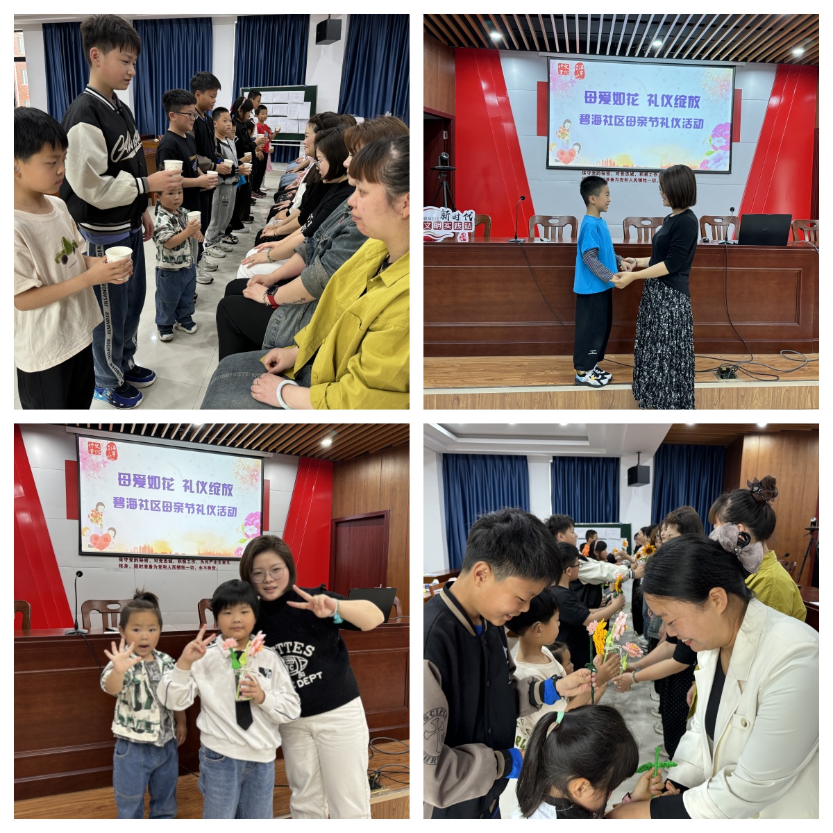 世上的爱有千万种,母爱却是独一无二的!母亲节是一个向母亲表达感恩和敬意的特殊日子。为弘扬中华优秀传统美德,传递孝母感恩道德风尚,增强亲子之间的情感纽带,5月12日,碧海社区文化礼堂举办了“母爱如花 礼仪绽放”母亲节礼仪活动。本次活动旨在通过礼仪的形式,让子女们更加深刻地感受到母爱的伟大和无私,同时表达对母亲的深深感激之情。