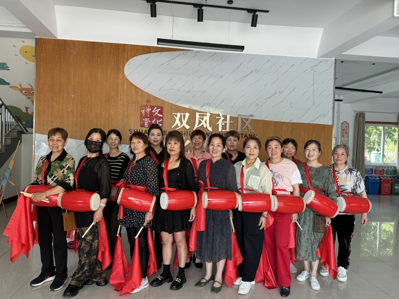 腰鼓是中国传统的民间艺术形式之一,具有悠久的历史和丰富的文化内涵。它既能锻炼身体,又能陶冶情操,对于提高社区居民的文化素养和身体素质具有重要意义。双凤社区一直以来都非常注重传统文化的传承和发扬,组建了“凤之韵”腰鼓队,并特别邀请腰鼓老师进行专门指导。