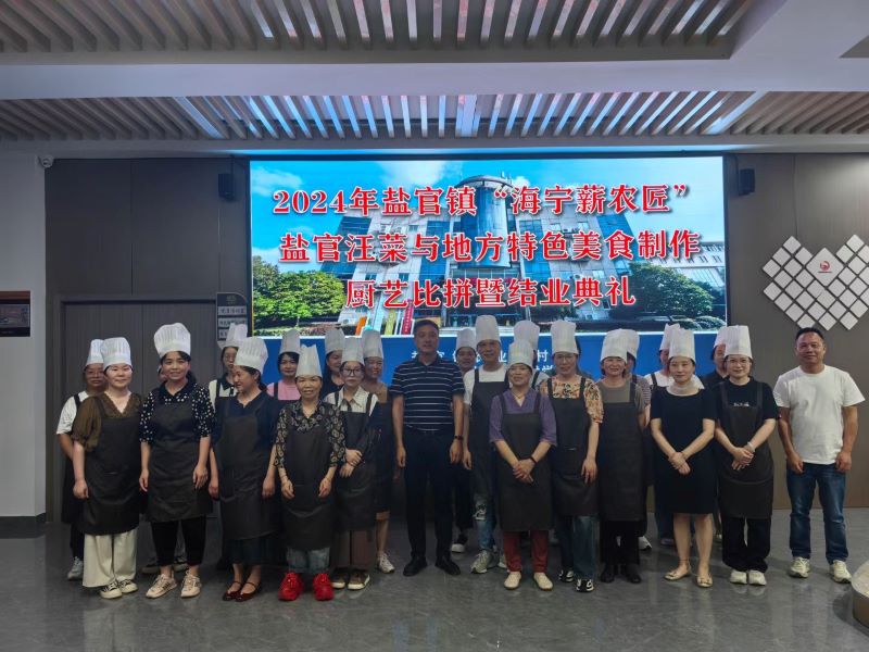 据悉,“盐官汪菜”作为农产品的一张“金名片”,不仅已成立“盐官汪菜”产业发展研究中心,更是成功注册集体商标,盐官成校在响应省委提出高素养劳动者队伍要落实“建设知识型、技能型、创新型劳动者大军”的要求的同时深入结合地方特色产业,全力推进本地农业产业发展,通过镇村校三方合作培训模式,助推本土产业打造衍生产品品牌链,进一步释放“盐官汪菜”内在的经济和文化价值,推动农旅融合发展,助力共同富裕。