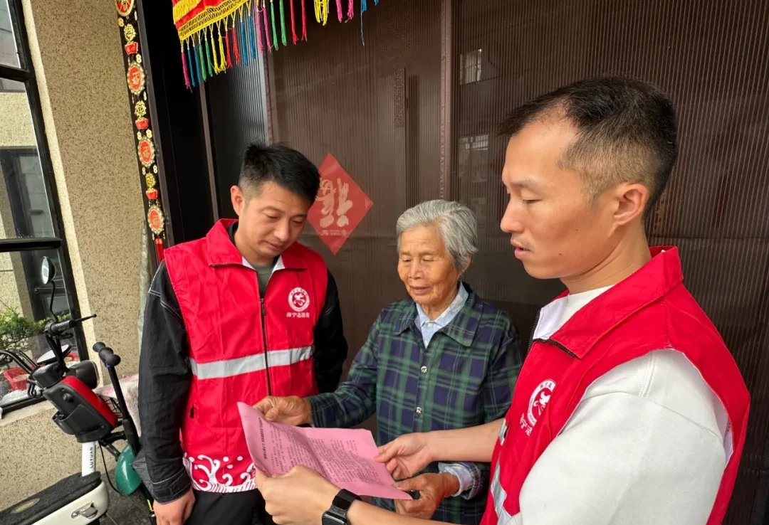 一是志愿者们来到新村点,向村民们发放“使用公筷公勺,共享健康生活”倡议书。