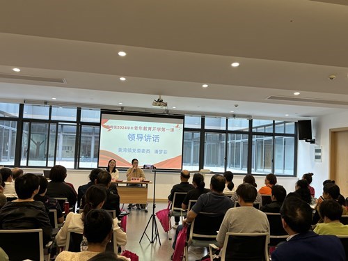 在金风送爽的重阳节前夕,黄湾镇在尖山党群服务中心多功能室隆重举行了2024学年老年教育开班仪式,黄湾镇党委委员潘梦菲出席,现场58位老年学员和闸口、黄湾邻里中心两个教学点近50位学员线上参加了该活动。