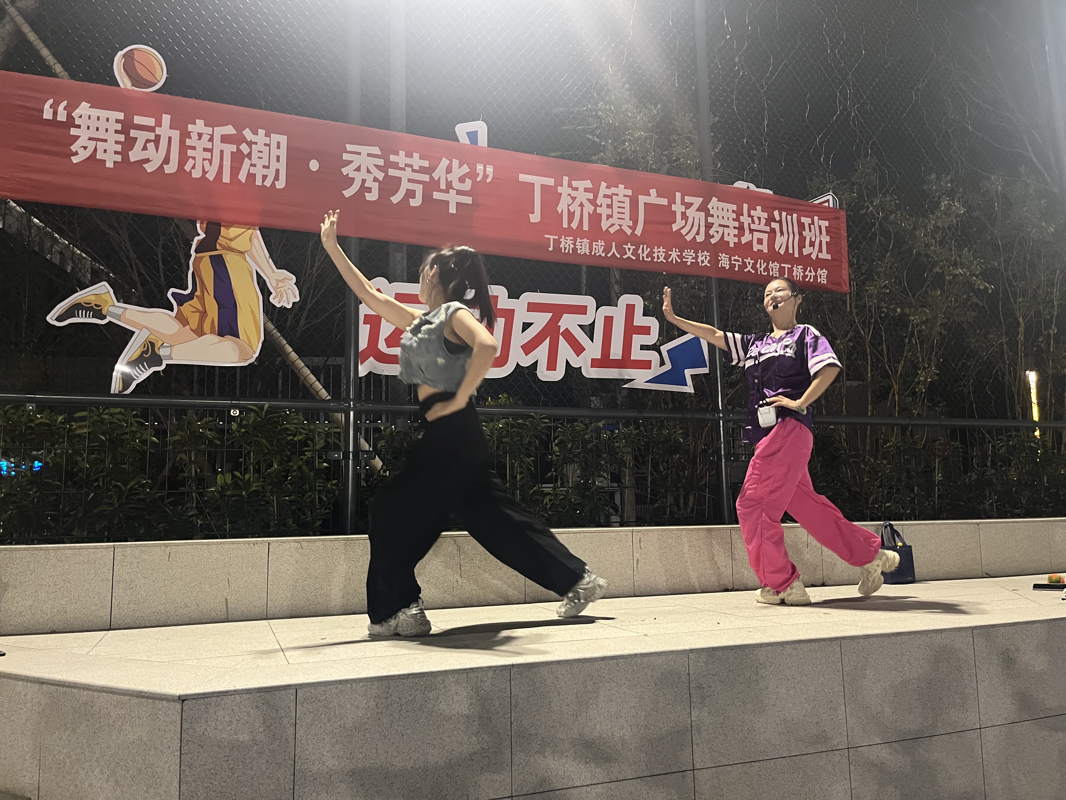 为丰富群众精神文化生活,迎接新文体中心的启用,10月16日晚,丁桥成校联合海宁文化馆丁桥分馆在丁桥镇新文体中心篮球场举办"舞动新潮·秀芳华"广场舞公益培训班。全镇130余名广场舞爱好者参加本次活动,以舞会友共贺文化新地标的建成。