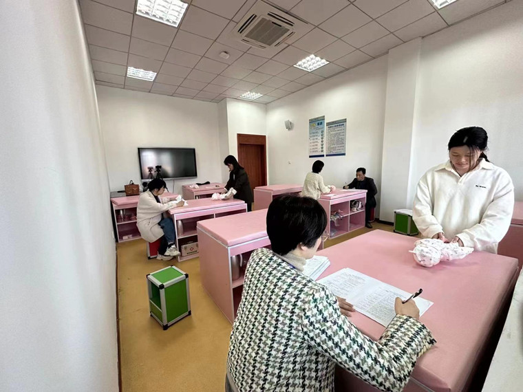 4月2日,斜桥成校育婴员四级和五级培训技能鉴定在海宁技师学院进行。共有47名中级育婴员学员和12名初级育婴员参加育婴鉴定。本次技能鉴定分理论和实操两部分。理论第一次采用上机考试方式,题型为选择题和判断题,共200题。理论考试结束后,进行实操考核。育婴实操考核的是“婴儿游泳”、“为婴儿测量腋温”、“为3个月婴儿进行被动翻身的游戏”、“为2岁的婴幼儿讲故事”等五项内容。每位学员依次面对考评员,按照考评要求,在回答问题时,同步进行操作演示,考评员根据学员表现作出合理评判。对于考核合格者,将由人社部门颁发职业资格证书。