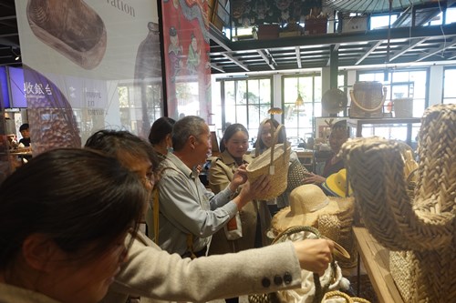 在自然造物·民艺研究中心,工作人员向学员详细展示了草编和藤编技艺和产品细节,产品陈列和选品等。学员们体会了这些精美的编织品背后的故事和历史,以及如何将这些传统的技艺融入现代生活中,感悟编织在新产品中的应用。