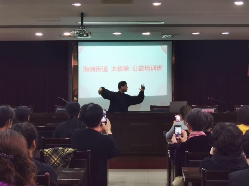 为进一步弘扬民族传统文化,满足居民精神文化需求,增强社区居民的身体素质,4月20日晚上,海洲街道社区教育中心“杨氏太极拳”公益培训班顺利开班,来自海洲街道各社区太极拳爱好者30余人参加培训。本次培训特聘海宁市武术协会副主席、杨式太极拳第七代传人杨建康老师前来授课。
