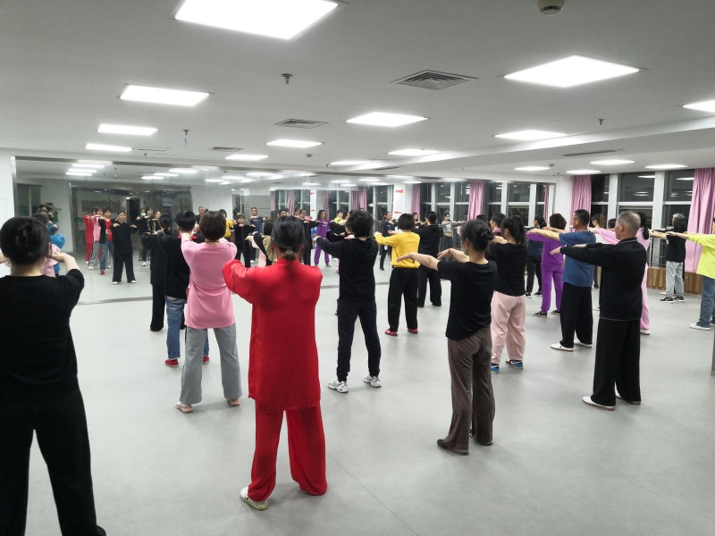 起势、野马分鬃、白鹤亮翅……伴随着舒缓的音乐,闪、转、腾、挪……杨老师从浅到深、从理论到实践,详细阐述每个动作标准、手型、步法、身法、眼神等,一招一式细致讲解太极拳的基本原理,示范练拳的方法技巧、动作要领。学员们认真学习,在老师的悉心带领下纠错、巩固、进步,整齐划一的动作、矫健的身姿彰显了学员们的蓬勃活力。