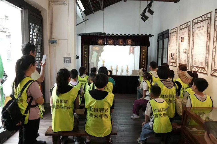在斜桥火车站,大家游览了斜桥火车站红色遗址,共同感受这座百年老站的峥嵘岁月;在斜桥皮影戏体验馆,听着讲解了解皮影戏的发展、制作技艺等,还观看了皮影表演;在斜桥剪纸馆,大家欣赏了剪纸作品,亲自体验了一把斜桥剪纸;在斜桥名人馆,大家了解了米谷、朱淑真等诞生于斜桥的历史名人故事。50组家庭一路听一路看,近距离感受了斜桥古镇魅力,感受斜桥非遗之美。