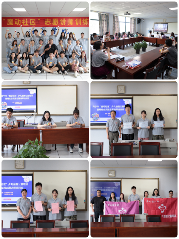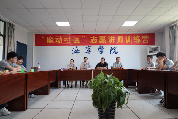 “魔动社区”大学生志愿讲师训练营是海宁市2023年“魔动社区”少儿益智公益培训暨“爱心返乡月”暑期社会实践活动的子项目。项目通过“导师+学员”团队研学形式,帮助大学生系统掌握魔方教学技能,指导大学生走进村(社区)文化礼堂,为农村青少年提供“故事与教学”、“游戏与教学”、“赛练讲玩”相融合的“魔方第二课堂”。在7月6日-11日一周内,集中研学三天,由海宁市社区学院林小英魔方教学团队负责教学。