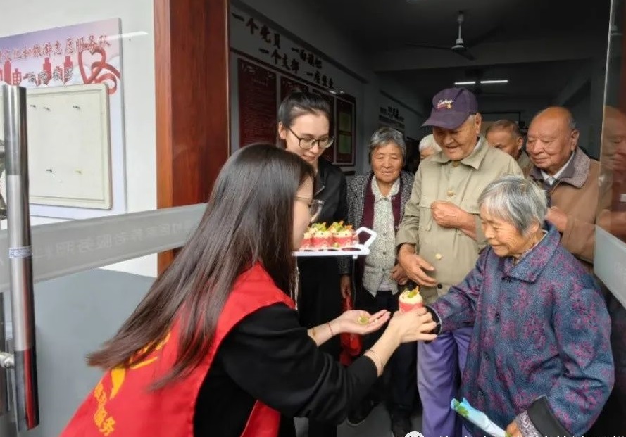 活动最后,村工作人员为参与活动的老人们送上蛋糕、长寿面与八宝粥,祝福他们身体健康、生活愉快!