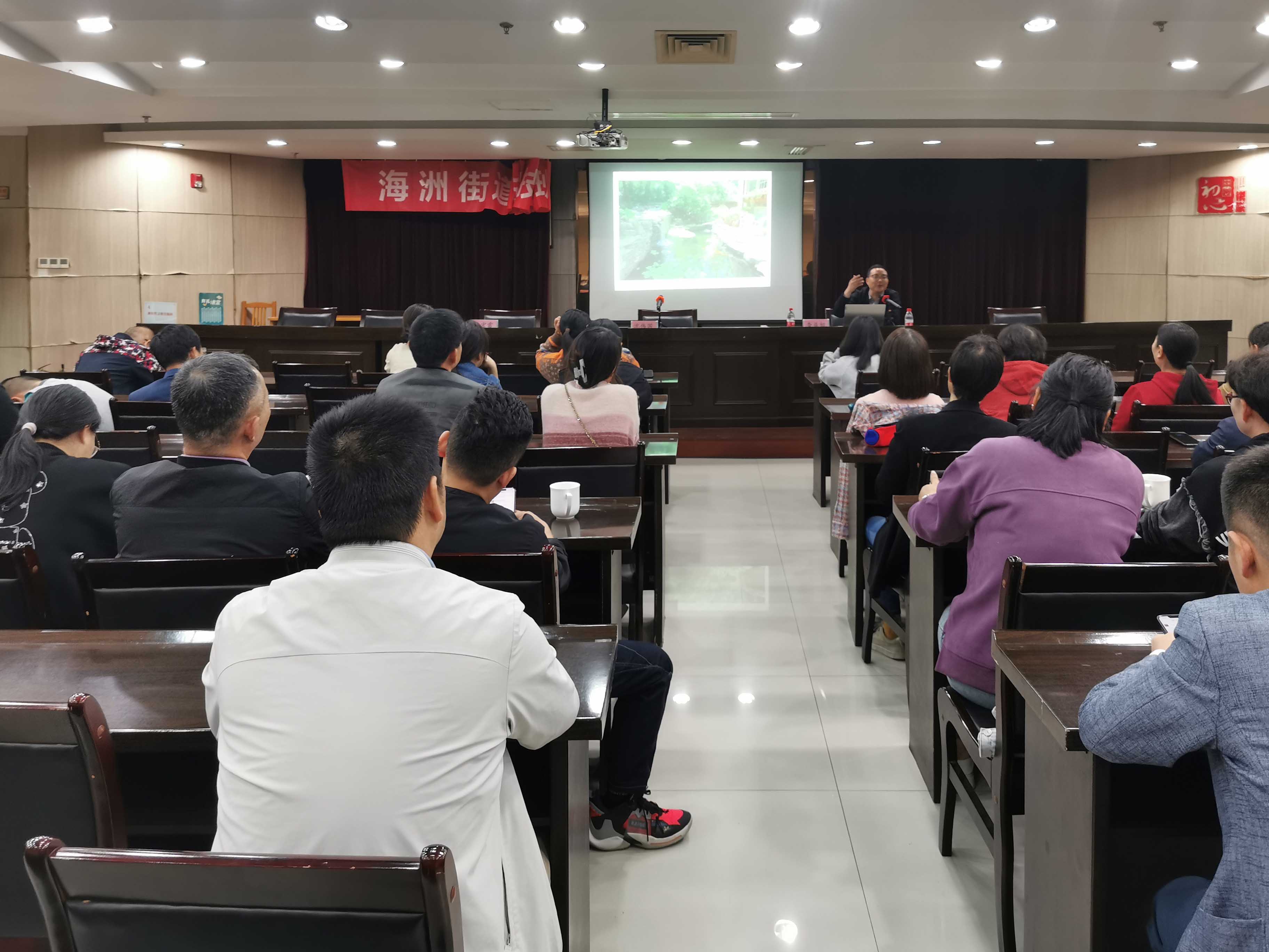 本次培训邀请了海宁市园林市政中心主任、园林专业高级工程师查益初授课。查益初主任从家庭花卉入手解了养花的好处、花卉与庭园建设、花卉的分类、栽培技术等,重点分析了花卉栽培与环境,从温度、湿度、水分、土壤和生物因素等对花卉栽培与日常管理影响进行了讲解与答疑。
