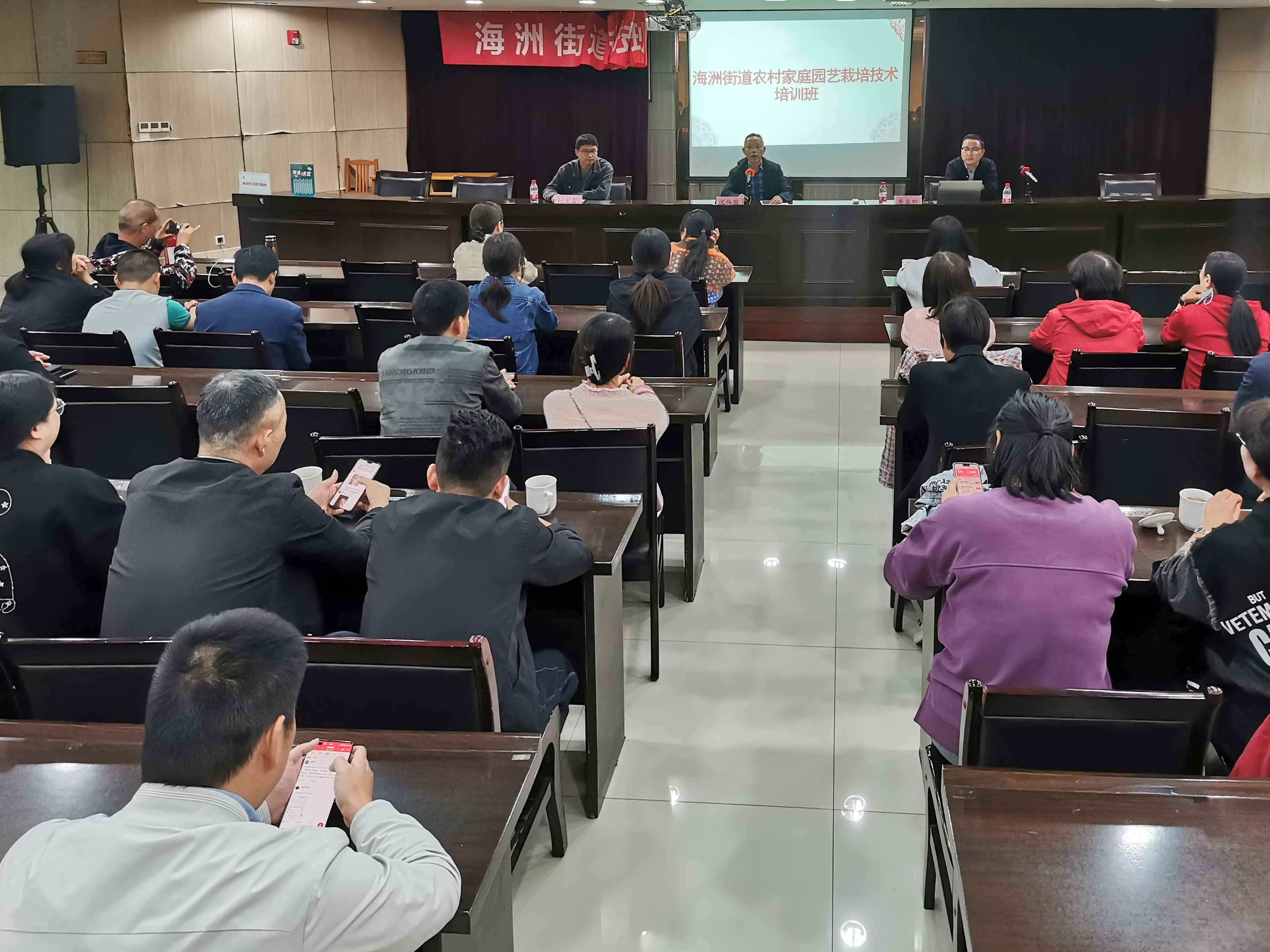为进一步提高农村家庭园艺栽培的知识和技能,深化农村美丽庭园建设,从而提高村民美化家园的能力,11月8日晚,海洲街道成功举办了一期家庭园艺栽培技术培训班。辖区内45名从事小区园艺绿化管理、家庭绿化园艺种养人员、园艺绿化爱好者参加了本期培训。