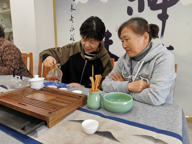 本次培训特邀茶艺专家覃佐梅等老师授课,培训共三次课, 在培训中,茶艺老师将带着居民们一起了解茶的历史、茶的分类,认识茶叶、茶器,学习茶中礼仪等,学员们跟随着老师,逐步走进茶文化的世界,在高雅有趣的茶艺冲泡活动中,接受中国传统文化的洗礼,加深对中国传统文化的认识。在此次课程中,茶艺老师不仅向各位老年居民介绍了茶道的基本知识,也鼓励大家将茶道视为一种生活的艺术,一种以茶为媒的生活礼仪,一种以茶修身的生活方式。在沏茶、赏茶、闻茶、饮茶的过程中增进友谊,美心修德,学习礼法,领略传统美德,静心、静神,陶冶情操,去除杂念。