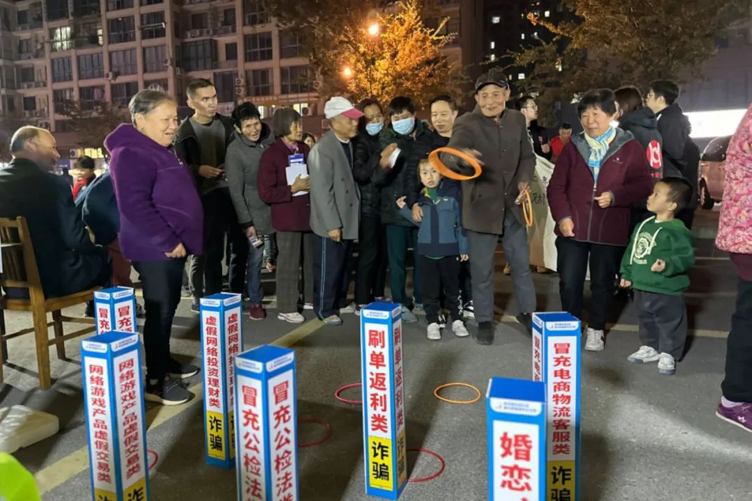 11月15日晚花溪社区学校联合中国联通海宁分公司开展“无诈无忧,反诈到底”反诈夜市活动,以群众体验的方式,将反诈知识输送到每一位群众心中。在反诈夜市里,游戏区有套圈反圈套的“诈骗金字塔”、盲盒反诈骗、诚信大作战、飞盘破套路;宣传区有“对邪教说不”宣传、平安三率宣传、联通惠万家、禁毒宣传、海宁农商银行袁花支行金融宣传等众多活动,诙谐逗趣的互动、此起彼伏的吆喝声,成为夜市里最美丽的风景线。活动吸引了居民群众的广泛关注和积极参与,活动共计发放反诈礼品200余份,反诈宣传册100余份,进一步增强了广大居民识骗、防骗能力,让反诈意识在广大群众心中扎根。
